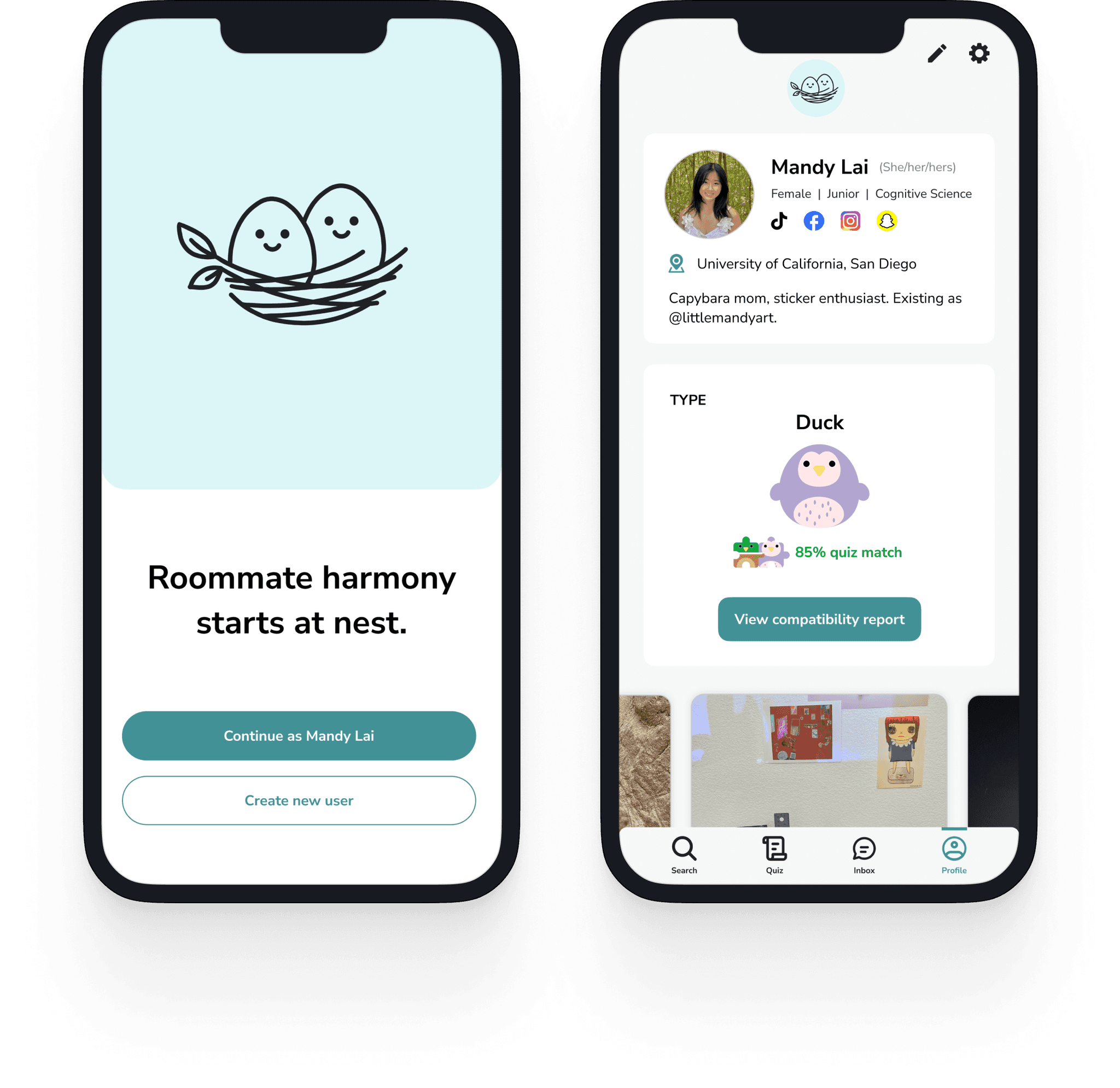 Nest—an app that turns the roommate search into a delightful experience, helping undergraduates find the perfect match for compatible living.