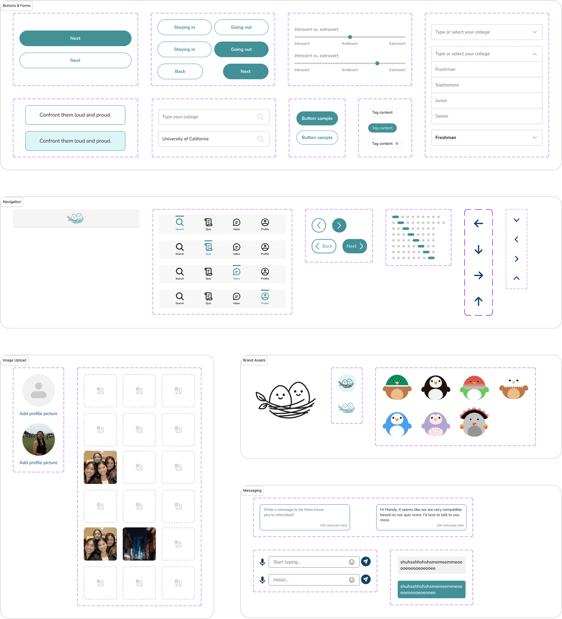 Despite the fast pace of the design-a-thon, I spent time creating a design system for the team. This allowed us to establish cohesive visual design and work efficiently with reusable components. We strived for a clean, modern look to resonate with Gen Z target users.