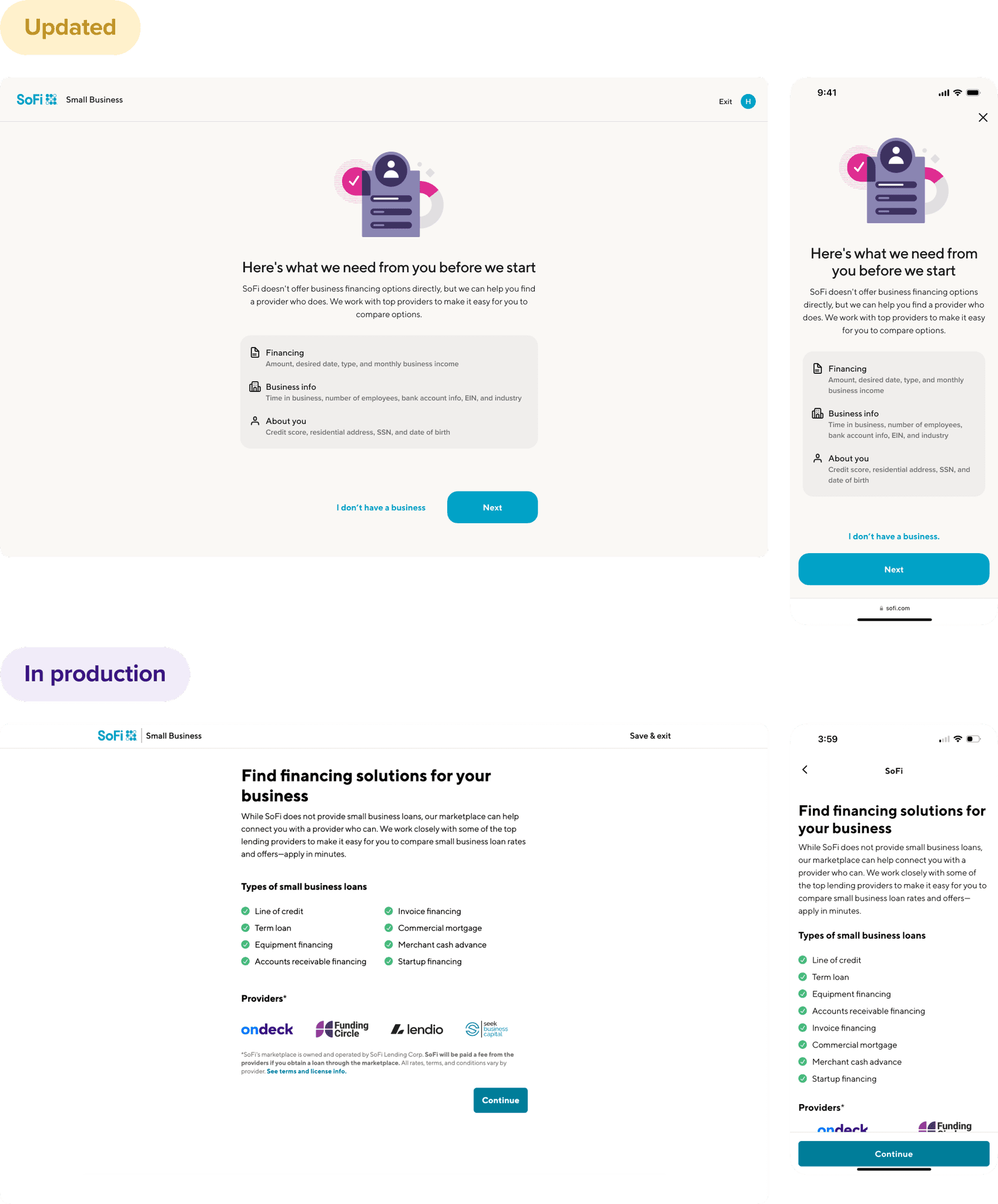 Note: I'll mention the Small Business Loan product flow a lot throughout this case study, as it was a high priority for my team.