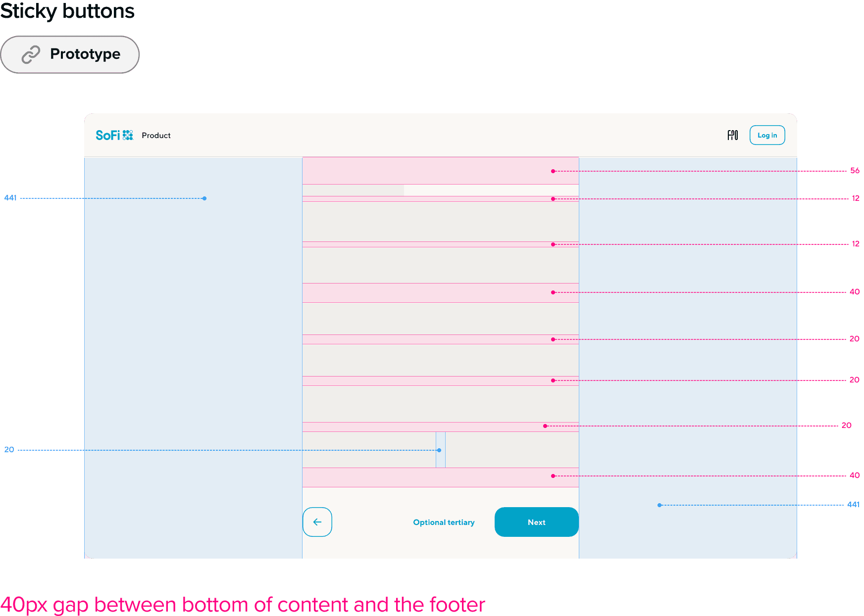 Spacing guidelines and a playable prototype with behavior for sticky buttons