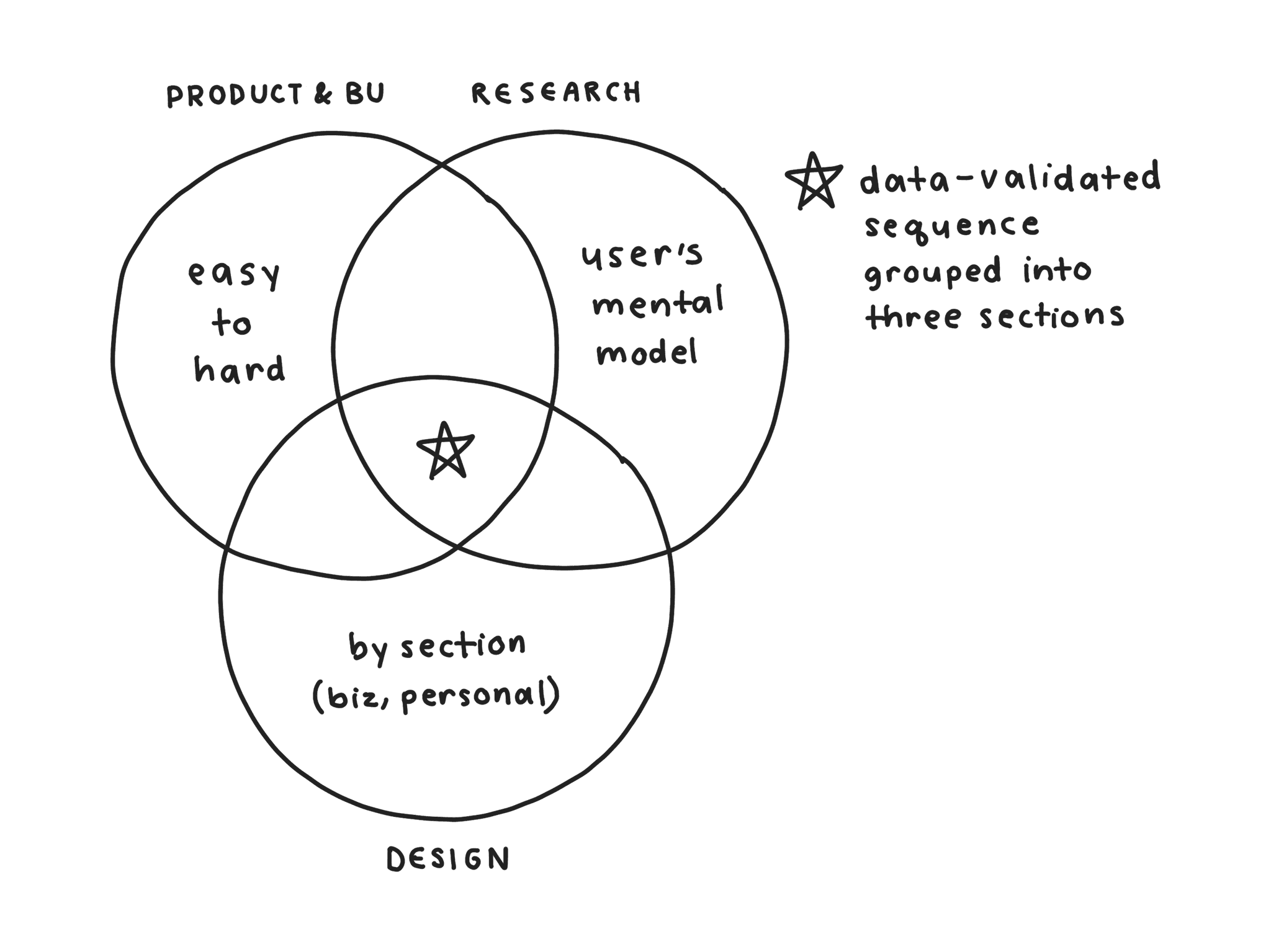 My stakeholders had various opinions on the optimal question order to maximize app submission rates. While awaiting UXR card sort results to finalize the order (~3 weeks), I focused on what I could control: reminding stakeholders that the order in my Figma file was a WIP and offering recs from a design perspective.