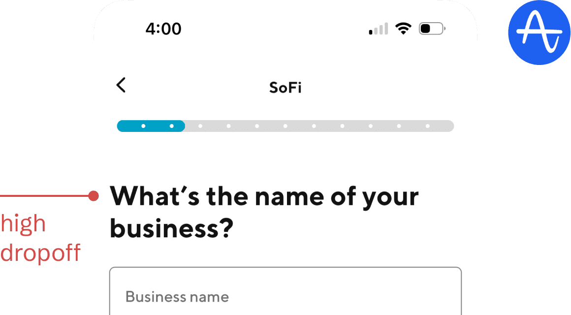 High drop off was occurring at the Business Name question because it was awkward to answer for prospective business owners.